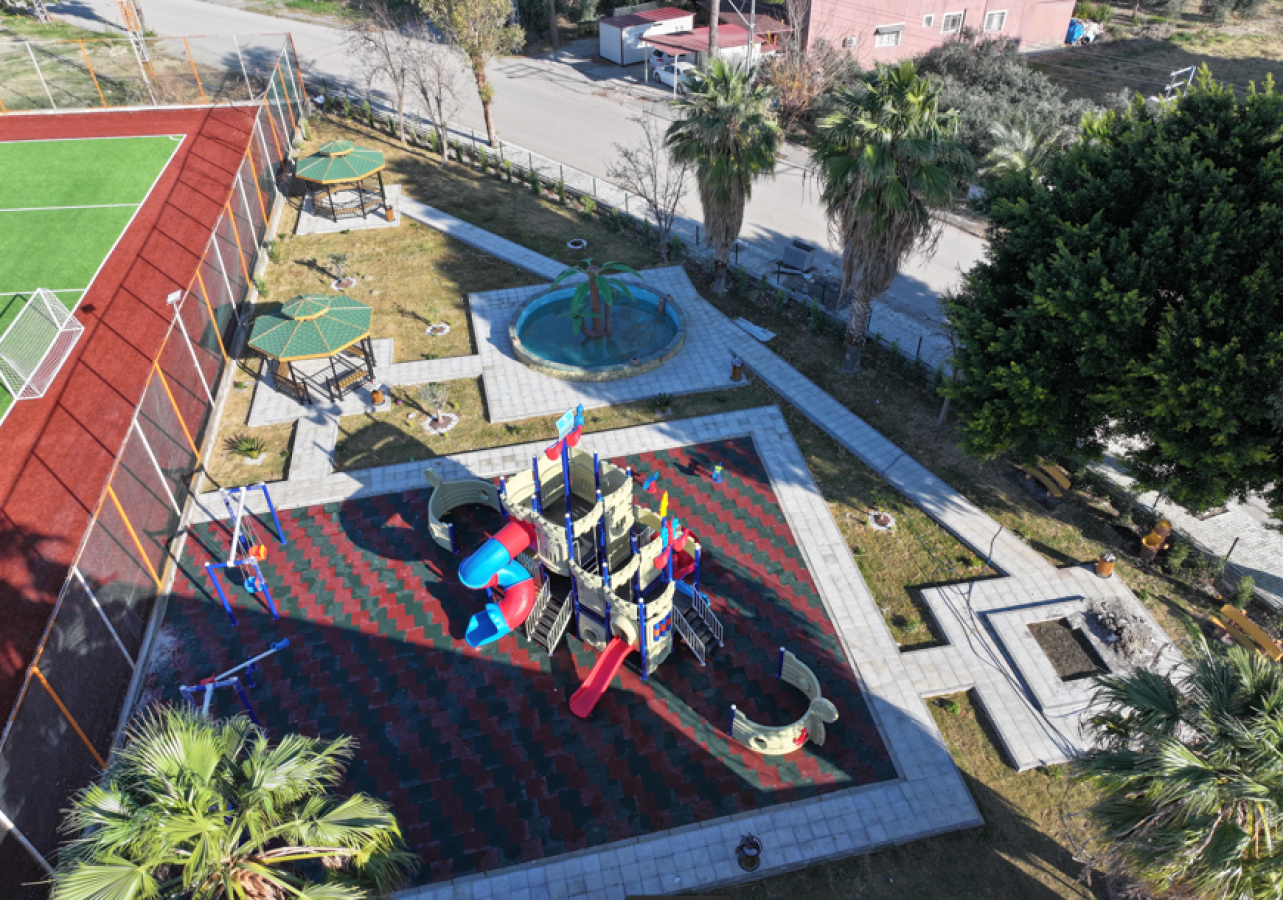 Övündük mahallemizde kapalı spor kompleksimizin ve spor tesislerimizin hemen yanında bulunan alanda çocuklarımızın güzel vakit geçirebilecekleri parkımızın inşasını tamamladık. Parkımızda çardaklar ve oturma alanları da oluşturduk.